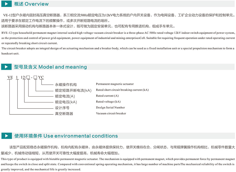 VE-12永磁户内固封高压真空断路器