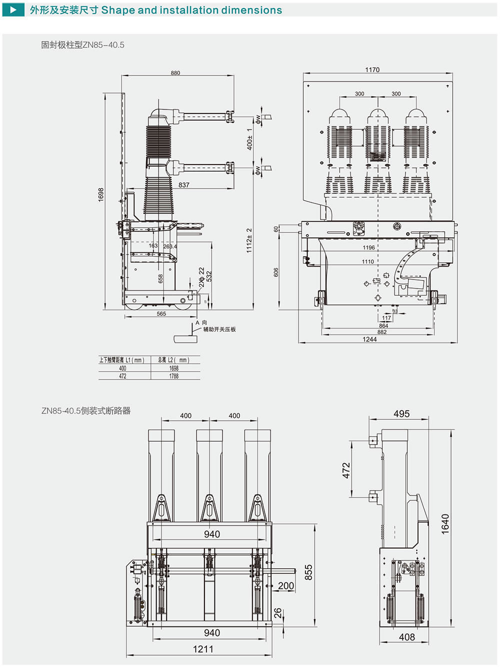ZN85-40.5系列户内高压真空断路器
